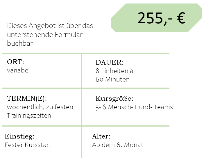 Damit ich dich wirklich individuell begleiten kann, arbeiten wir in kleinen Gruppen mit maximal 6 Mensch-Hund-Teams.